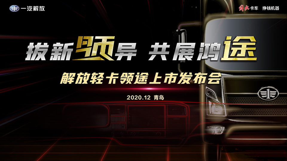 2020年12月15日,主题为“拔新领异 共展鸿途”的解放轻卡领途上市发布会在青岛举行,以中国一汽总经理助理、一汽解放董事长、党委书记胡汉杰为代表的解放高层领导、解放轻卡全国经销商、服务商、合作伙伴及用户代表悉数亮相,足见对解放领途产品的期待和重视。