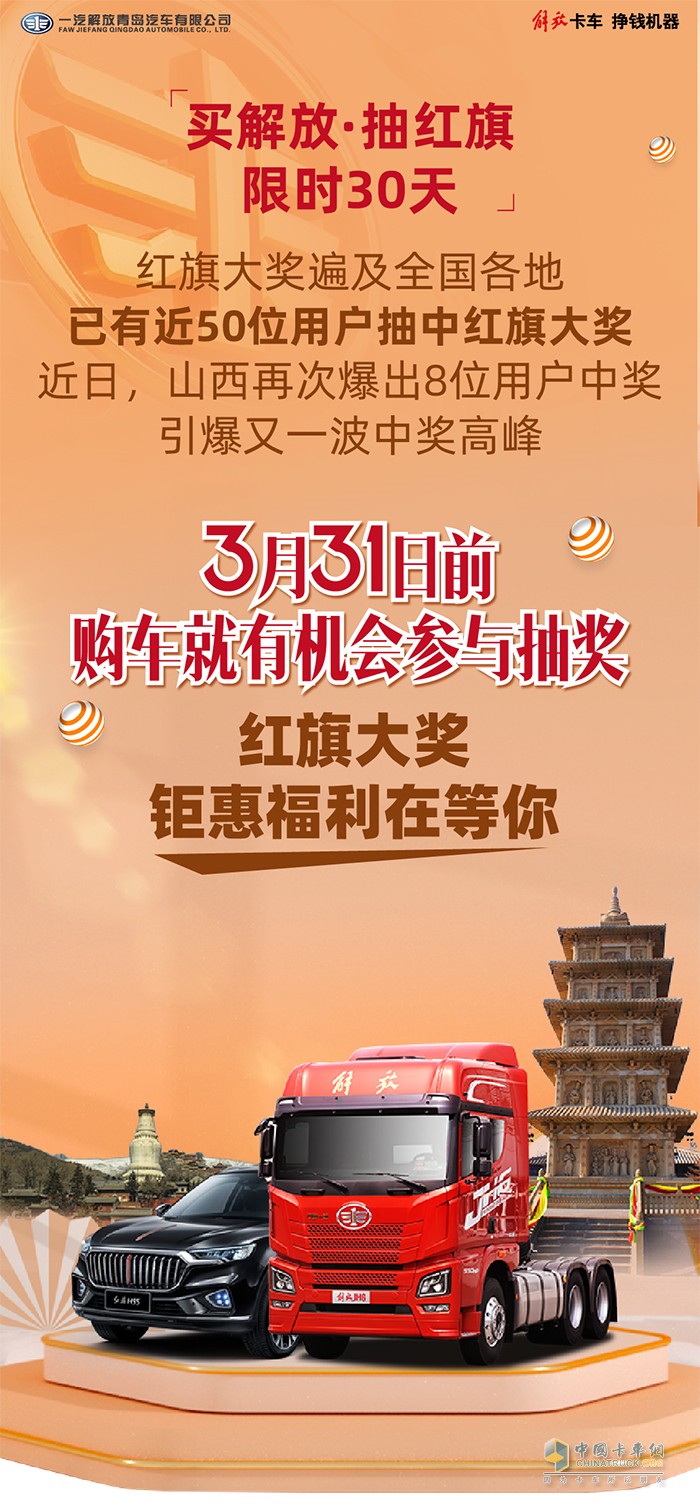 “买解放 抽红旗”持续进行中,山西再现8位中奖用户!